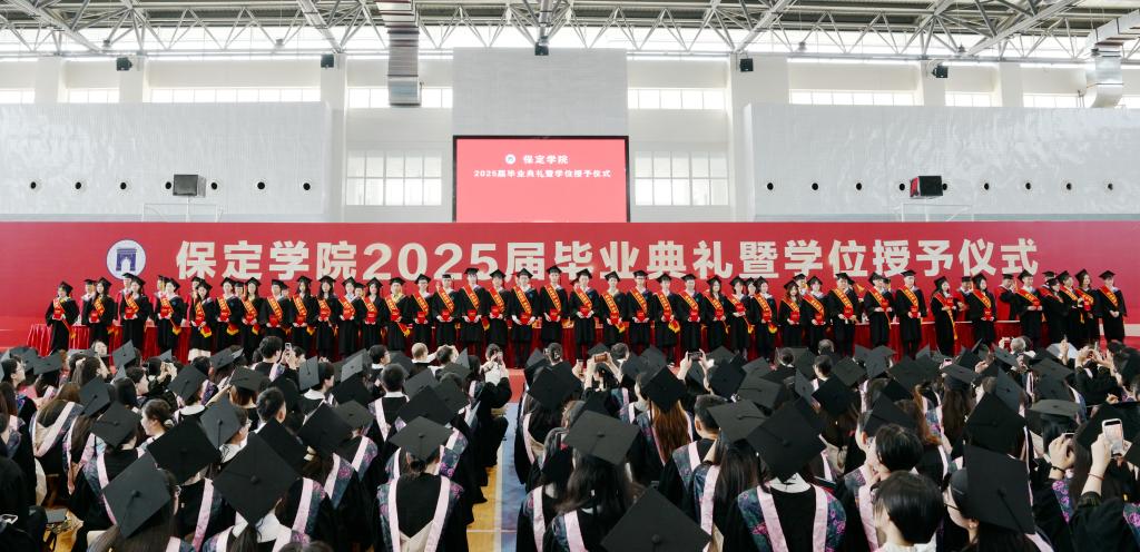 6月13日上午,保定学院2025届毕业典礼暨学位授予仪式在体育馆举行。校领导胡连利、刘清波、周林伟、