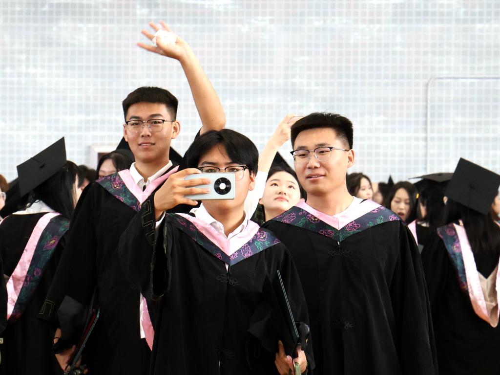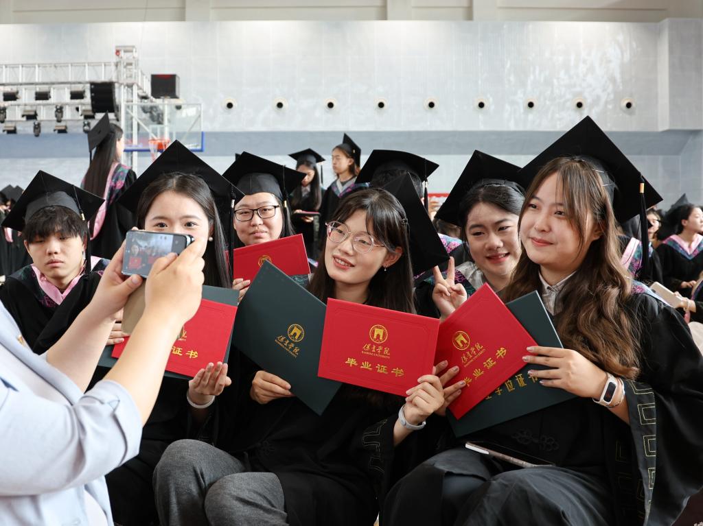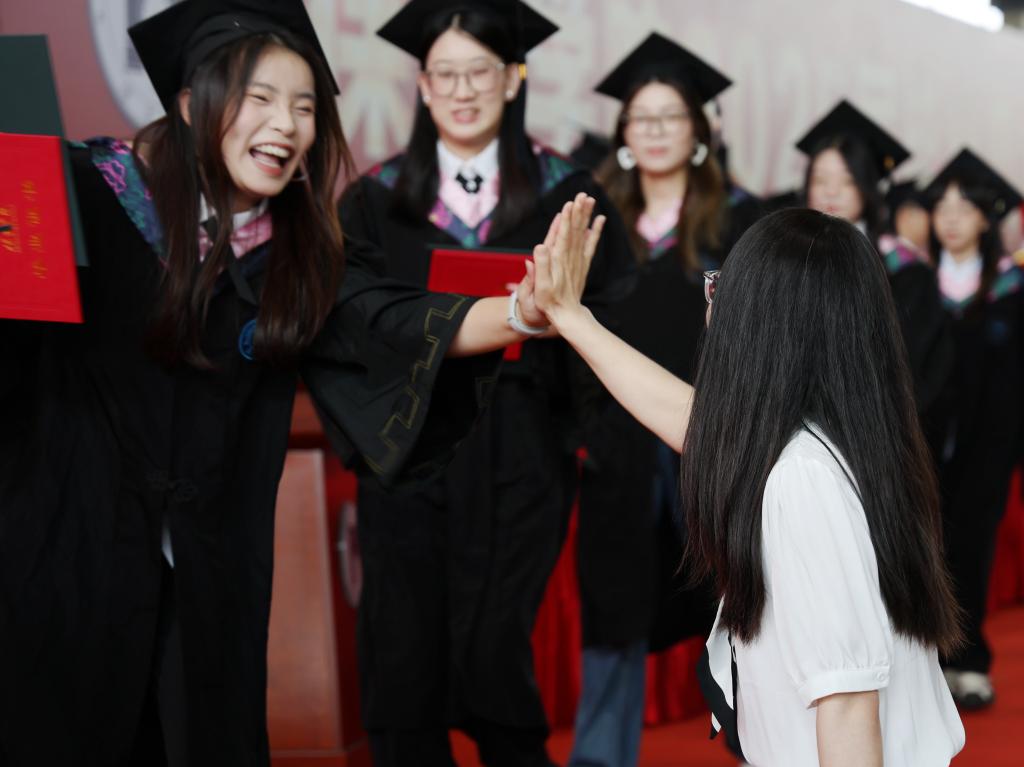 典礼尾声,校领导和与会教师挥手送别毕业生,祝福他们踏上人生新征程。