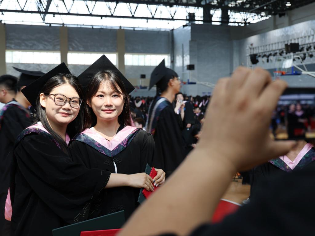 随后,毕业生依次走上主席台,校领导和学位评定委员会委员为他们一一正冠拨穗、授予学位,并向优秀毕业生代表、西部就业毕业生颁发荣誉证书。