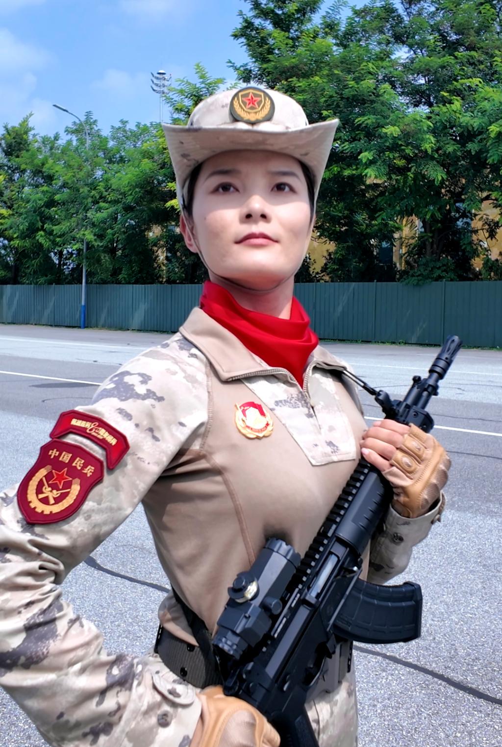 梁欣瑶从小怀揣从军报国的梦想,2019年高考结束后毅然参军入伍,2021年退役入学。在举世瞩目的胜利日纪念大会上,经过刻苦训练的梁欣瑶和战友们一起以最标准、最规范的步伐英姿飒爽地走过了天安门广场。