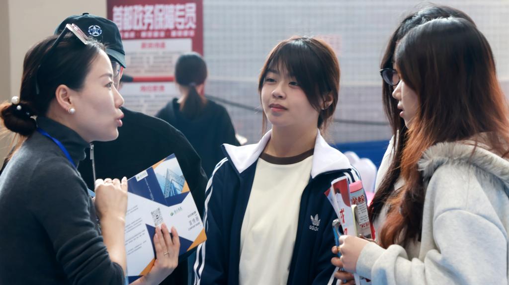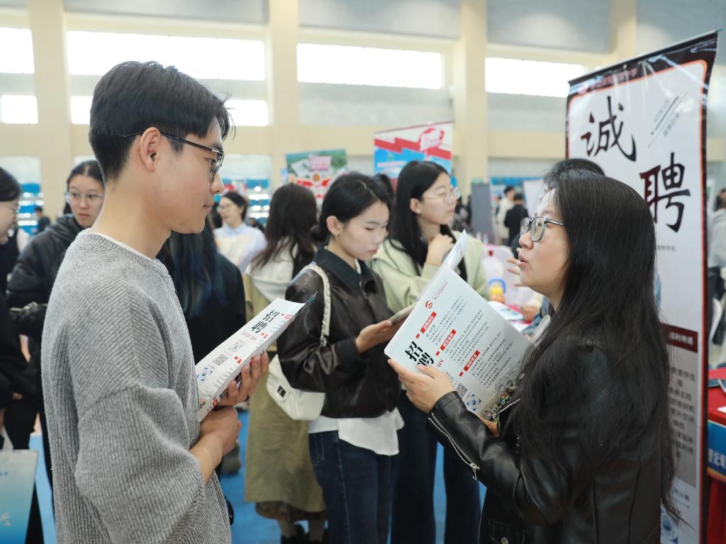 在招聘会现场,毕业生主动与用人单位沟通交流,积极投递简历;用人单位认真推介岗位、细致解答疑问。现场互动热烈。据不完全统计,约2100名毕业生在现场与用人单位初步达成就业意向。